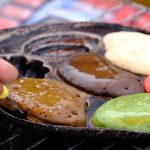 - Panaskan cetakan kue cubit kemudian oleskan pakai margarin. Tuang adonan ke setiap lubang hingga mengembang dan setengah matang.