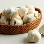 - Angkat adonan lalu tunggu sampai suhunya normal. Ambil adonan secukupnya yang diletakkan pada kulit jagung kering lalu bungkus dengan rapi.