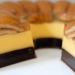 - Tuangkan adonan coklat di atas adonan putih yang sudah mengeras dengan perlahan lalu biarkan hingga menjadi set dan mengeras.